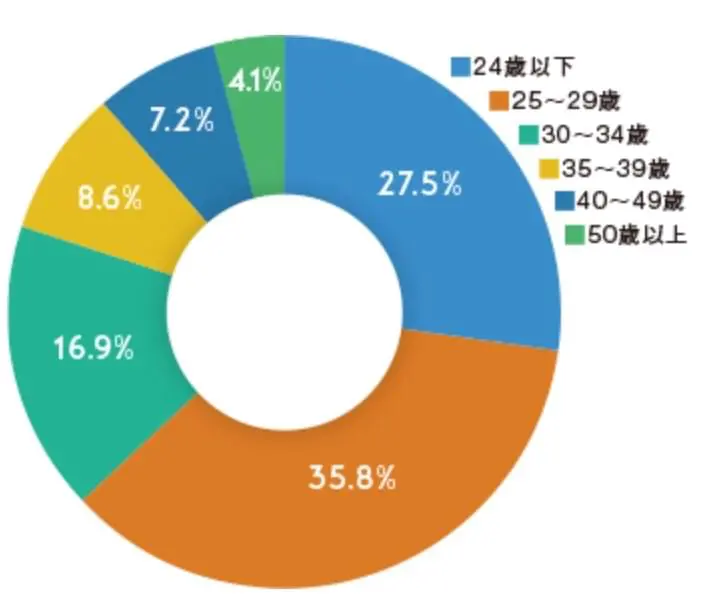 マイナビ転職 Agentに登録している求職者は、34歳以下が88.8%を占めています。そのため、若い世代の転職に力を入れています。